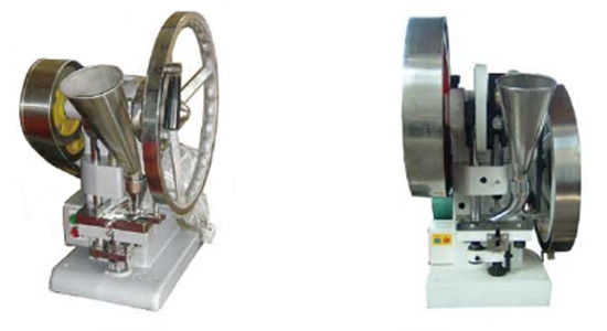 one pair of punching die can be erected on this press. Both filling depth of material and thickness of tablet are adjustable.